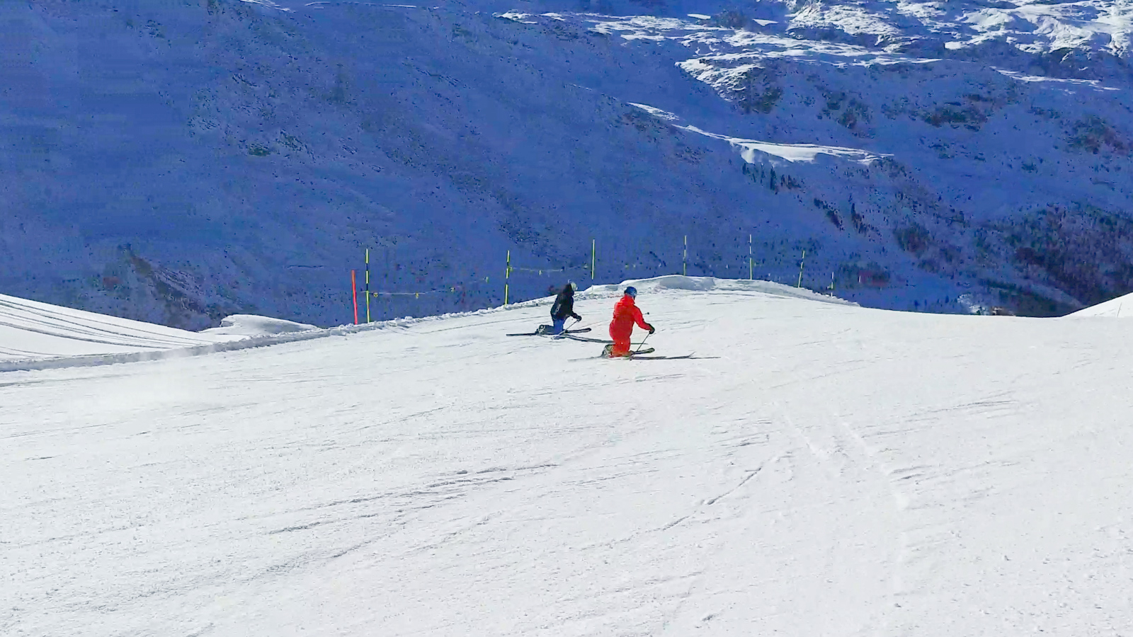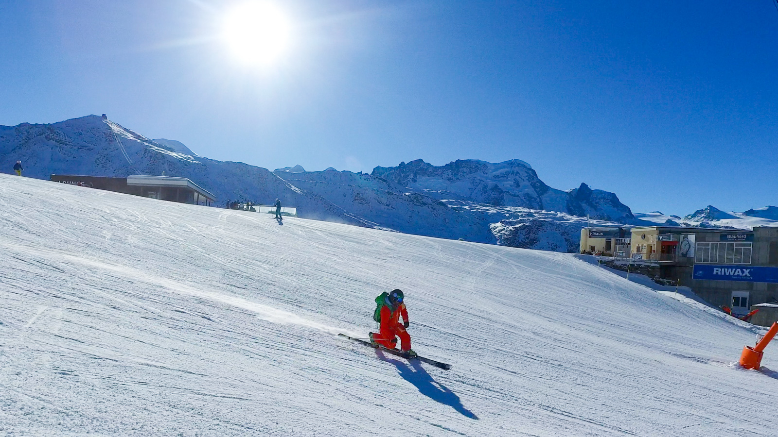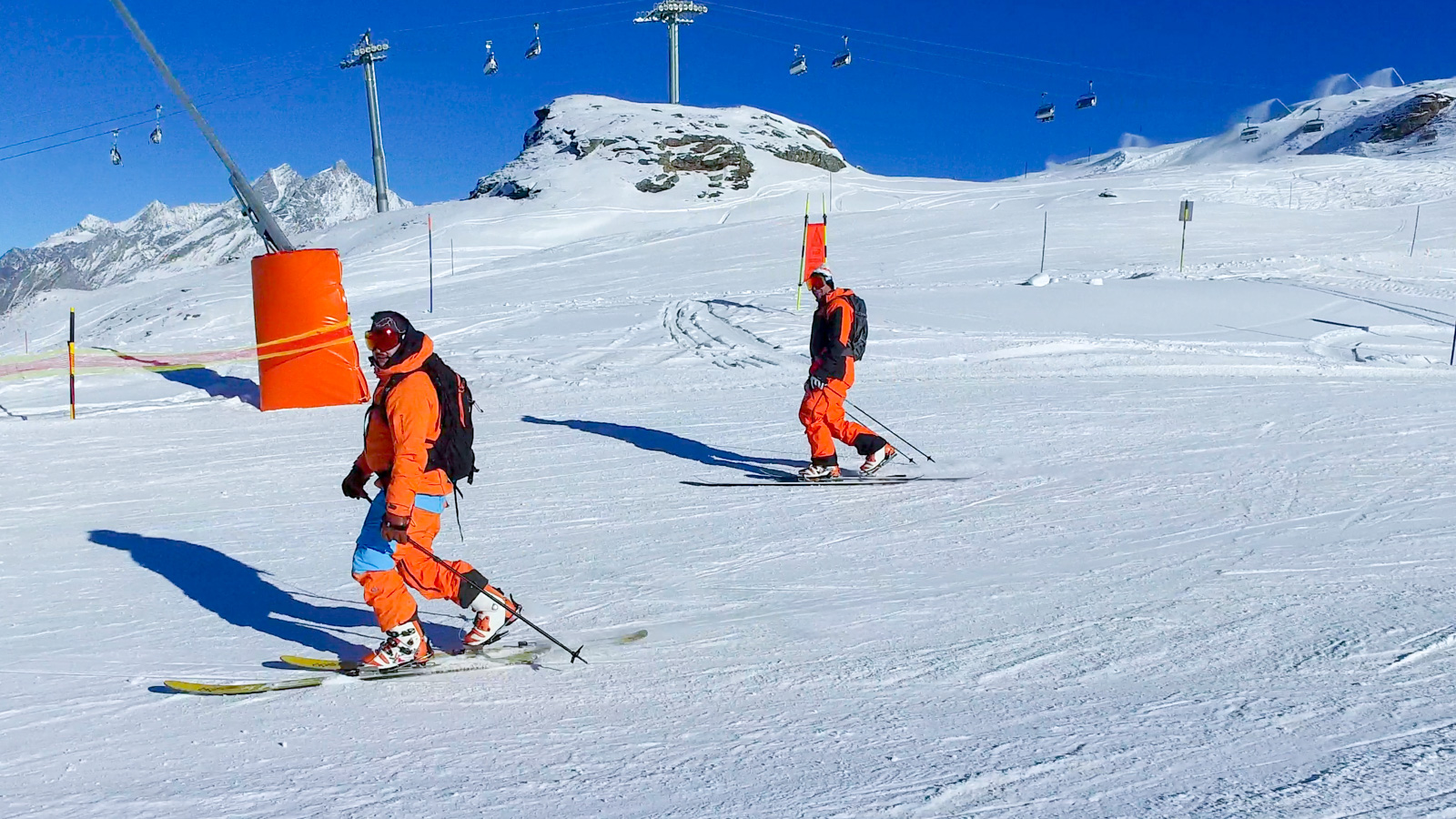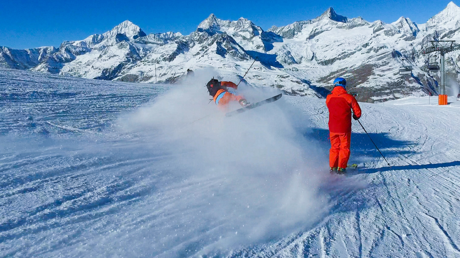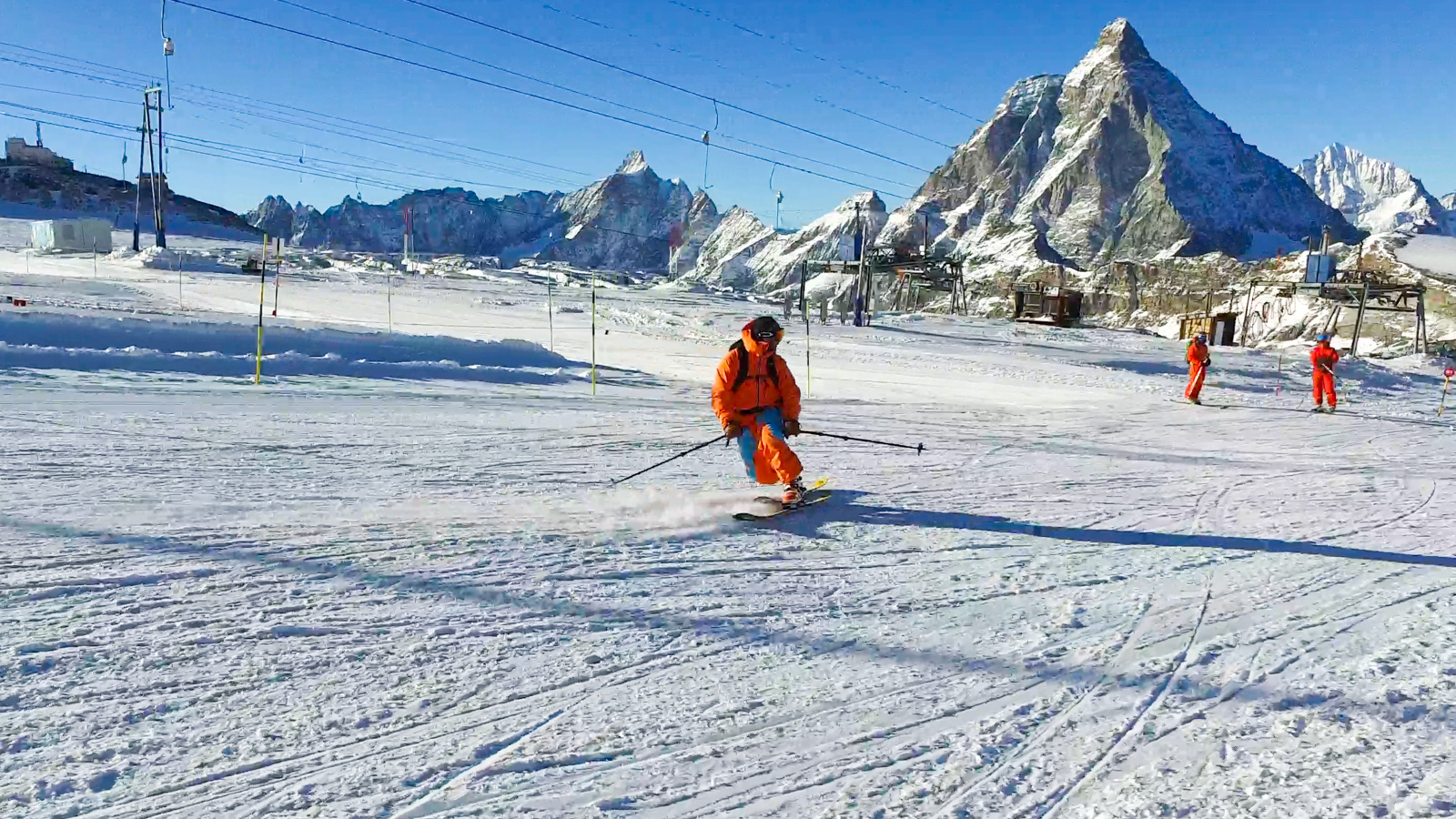Le lendemain, la météo est toujours avec nous. Nous partons alors tester une autre partie du domaine. Nous réalisons quelques belles prises d’images, le tout avec le sourire et cette vue imprenable sur le Cervin. Un bon moment de passion et de partage.