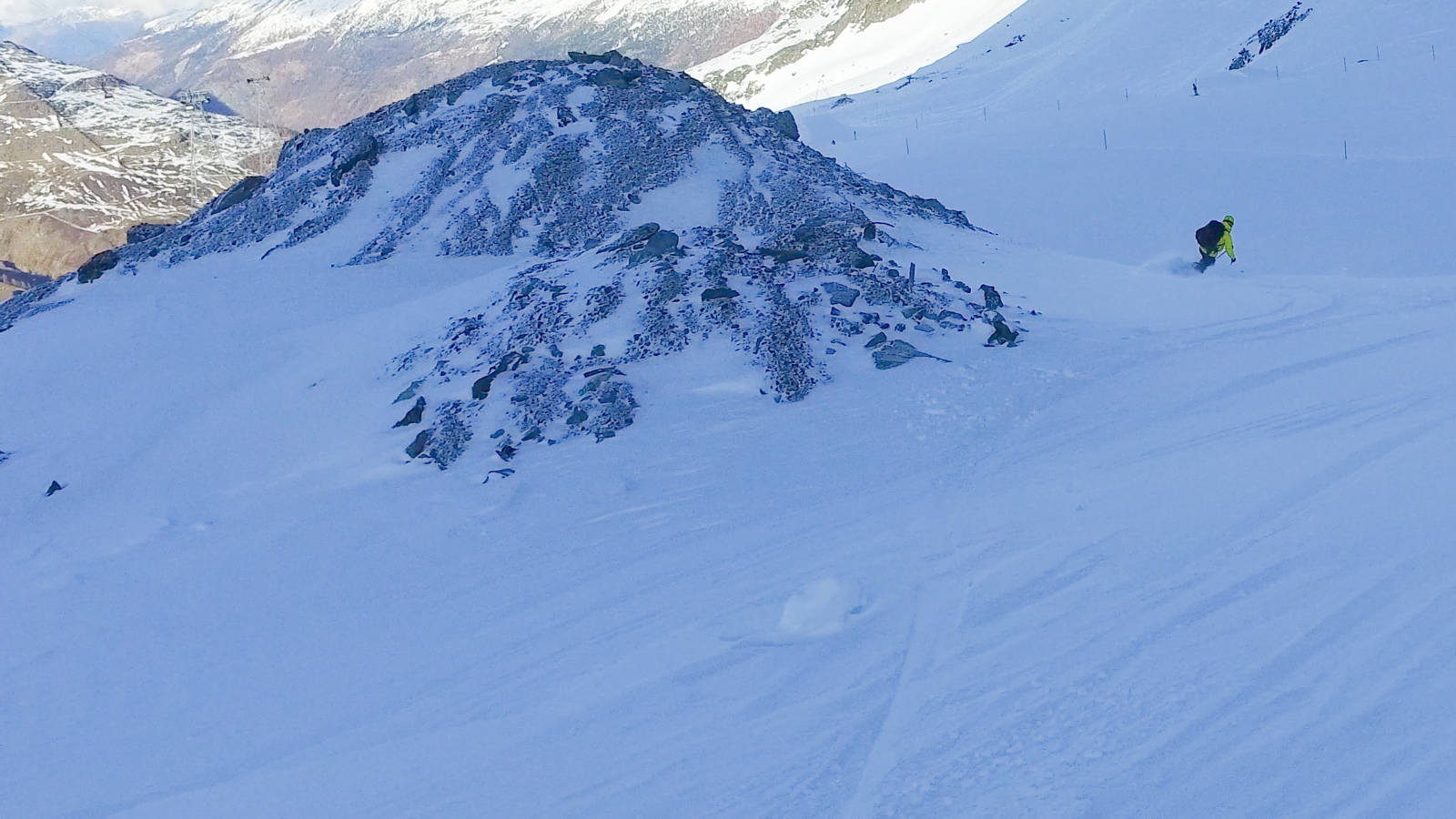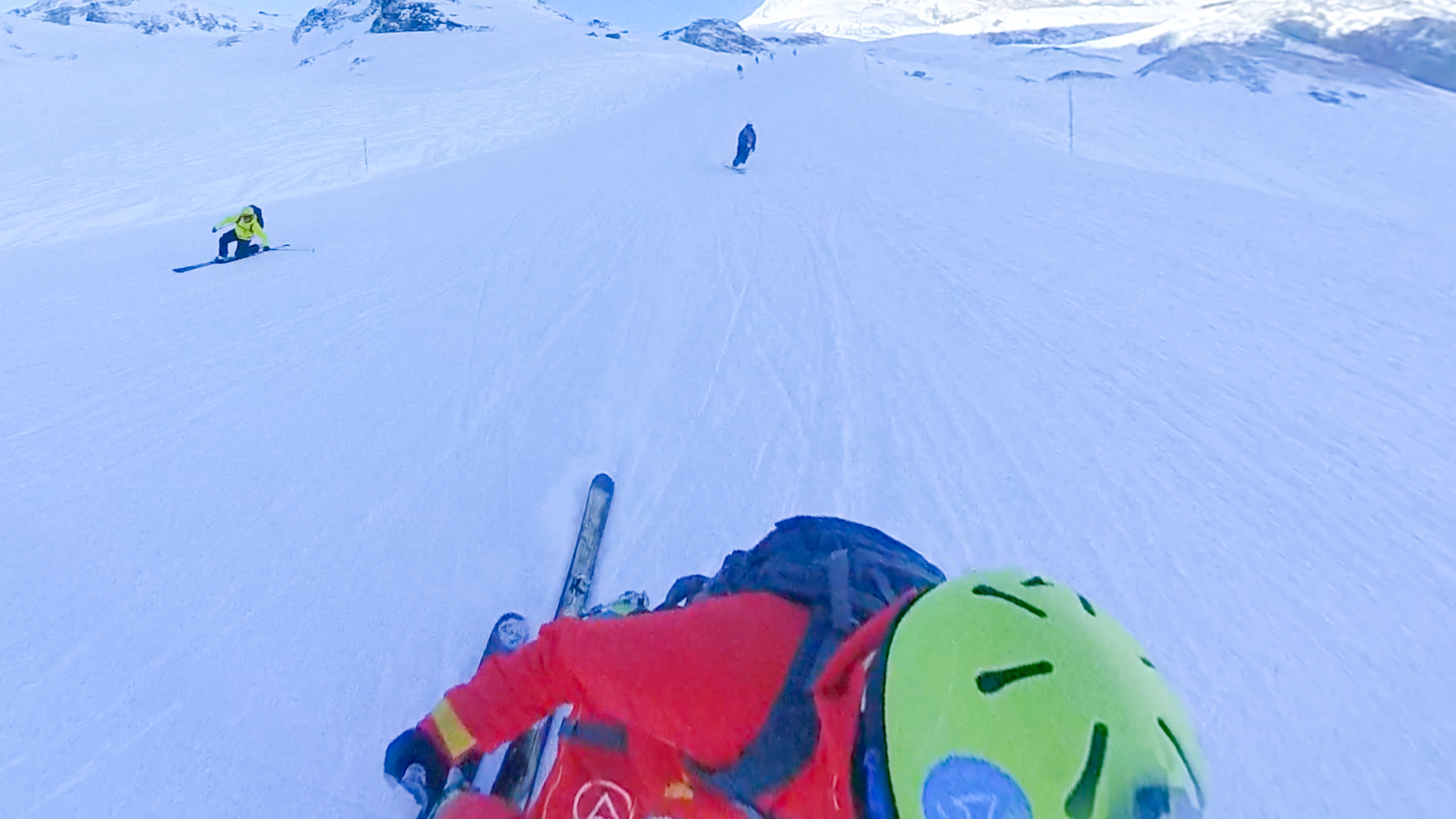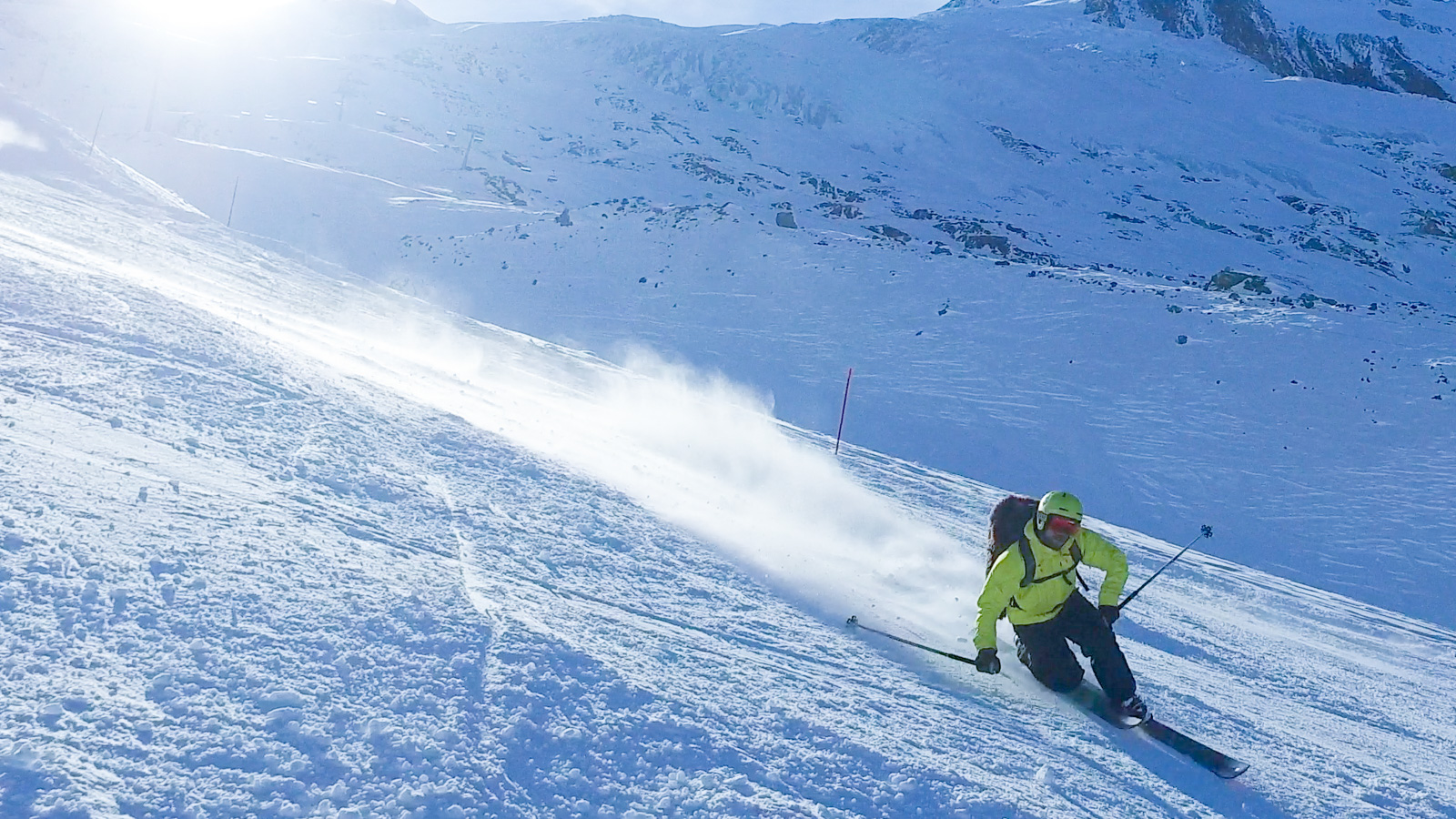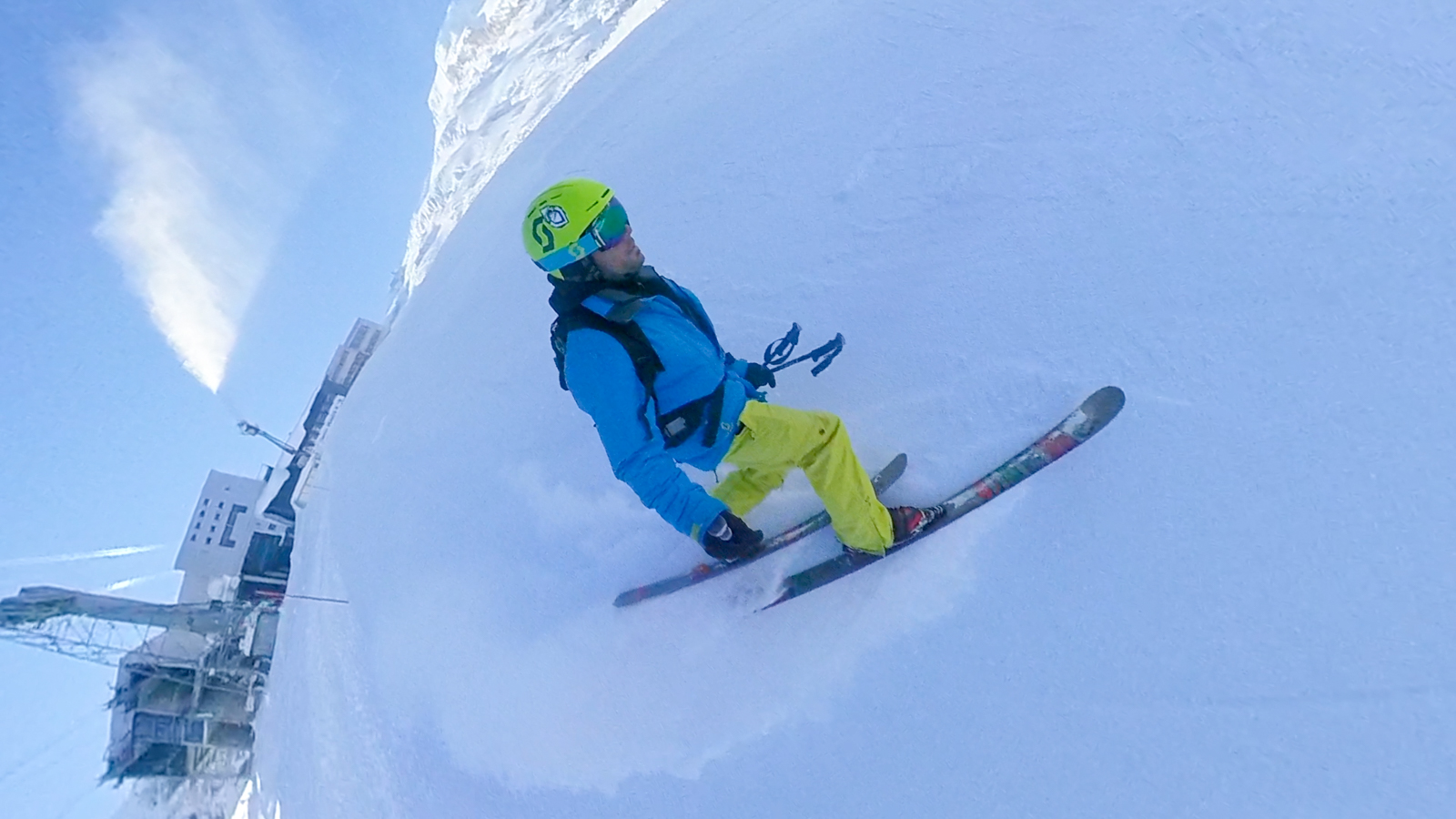 Le dernier jour, quelques virages dans la poudre, quelques tests de notre nouveau matériel de tournage (une caméra 360°, la Insta360), en passant par quelques conseils pour les débutants qui se sont joints à nous pour cette ouverture de saison.