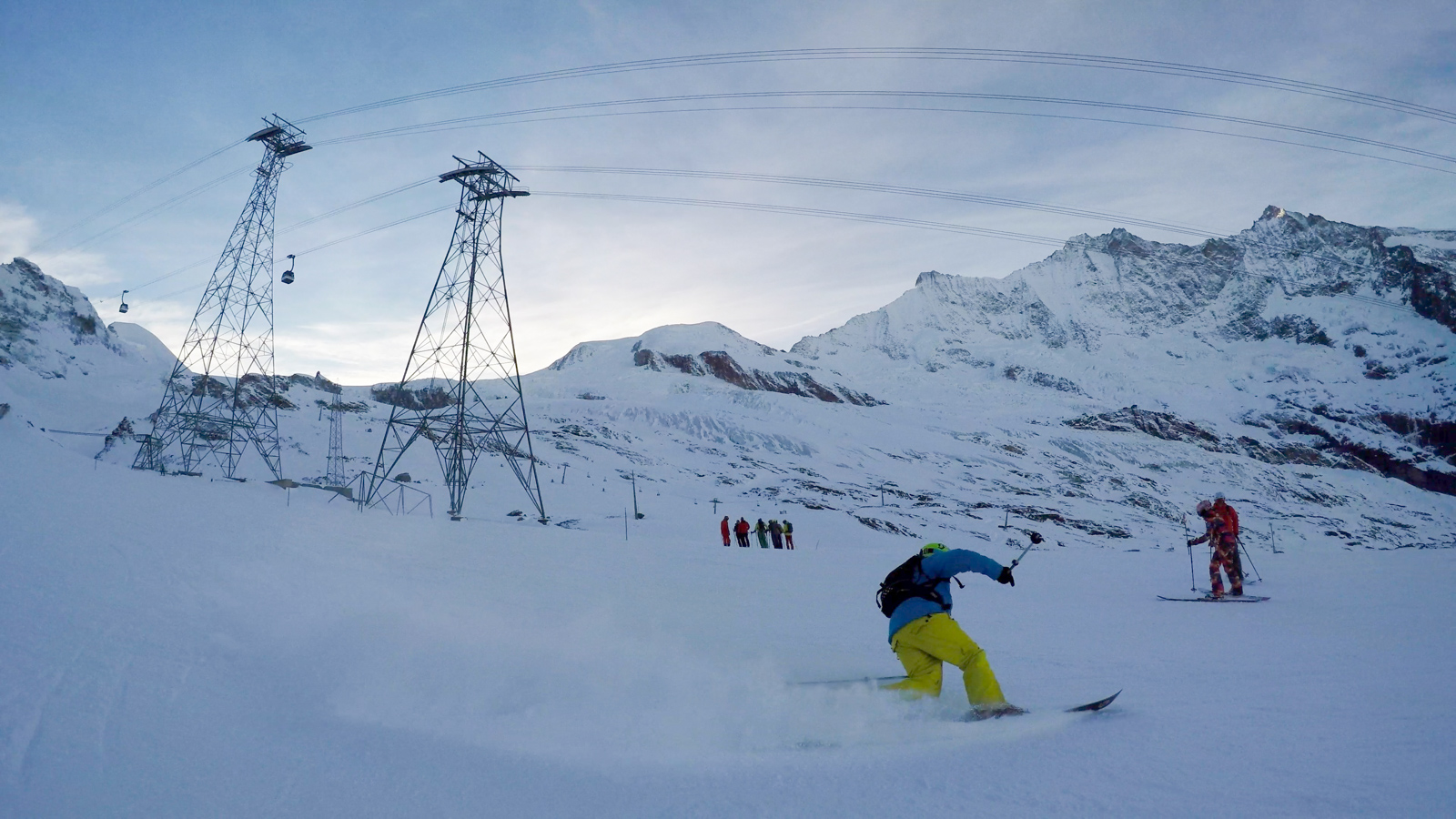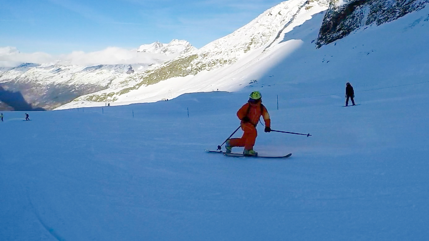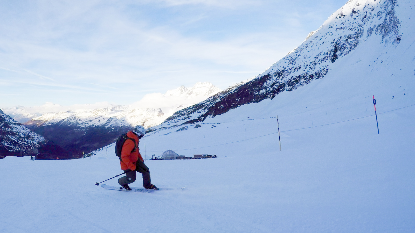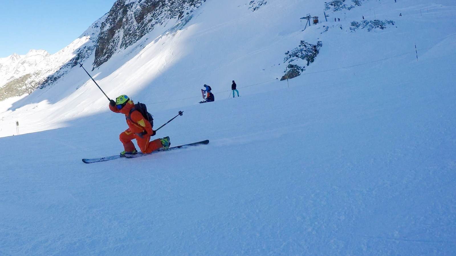Le dernier jour, quelques virages dans la poudre, quelques tests de notre nouveau matériel de tournage (une caméra 360°, la Insta360), en passant par quelques conseils pour les débutants qui se sont joints à nous pour cette ouverture de saison.