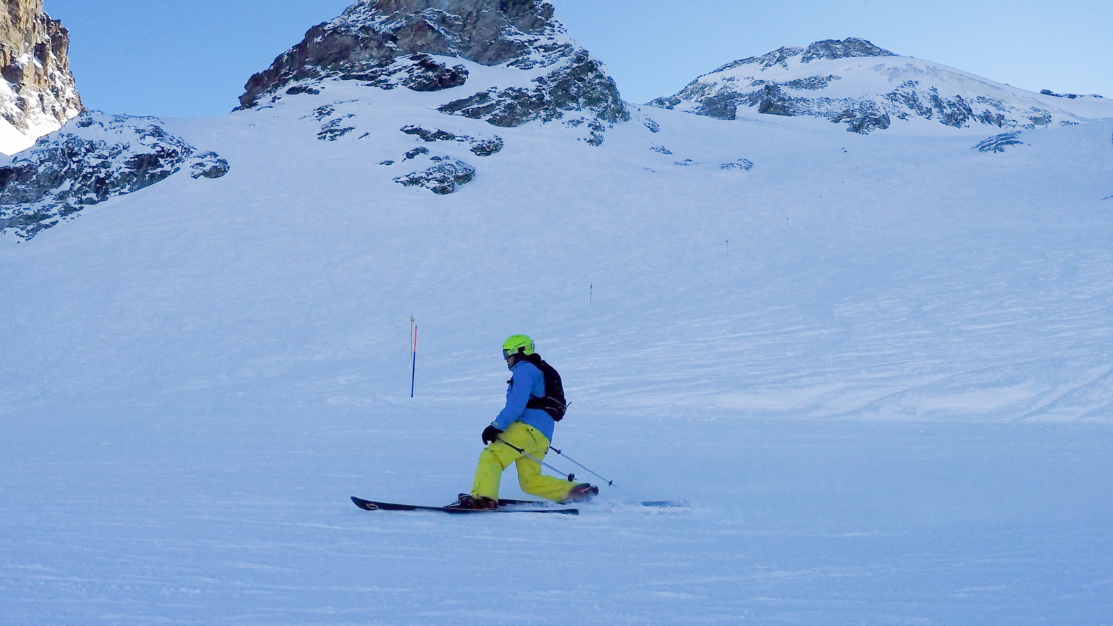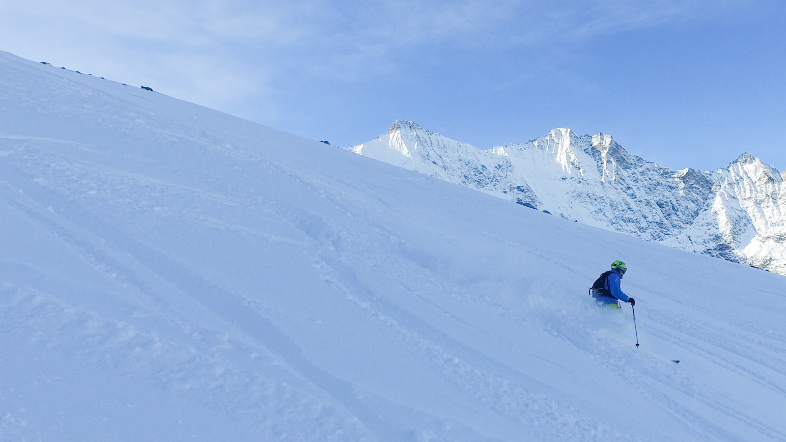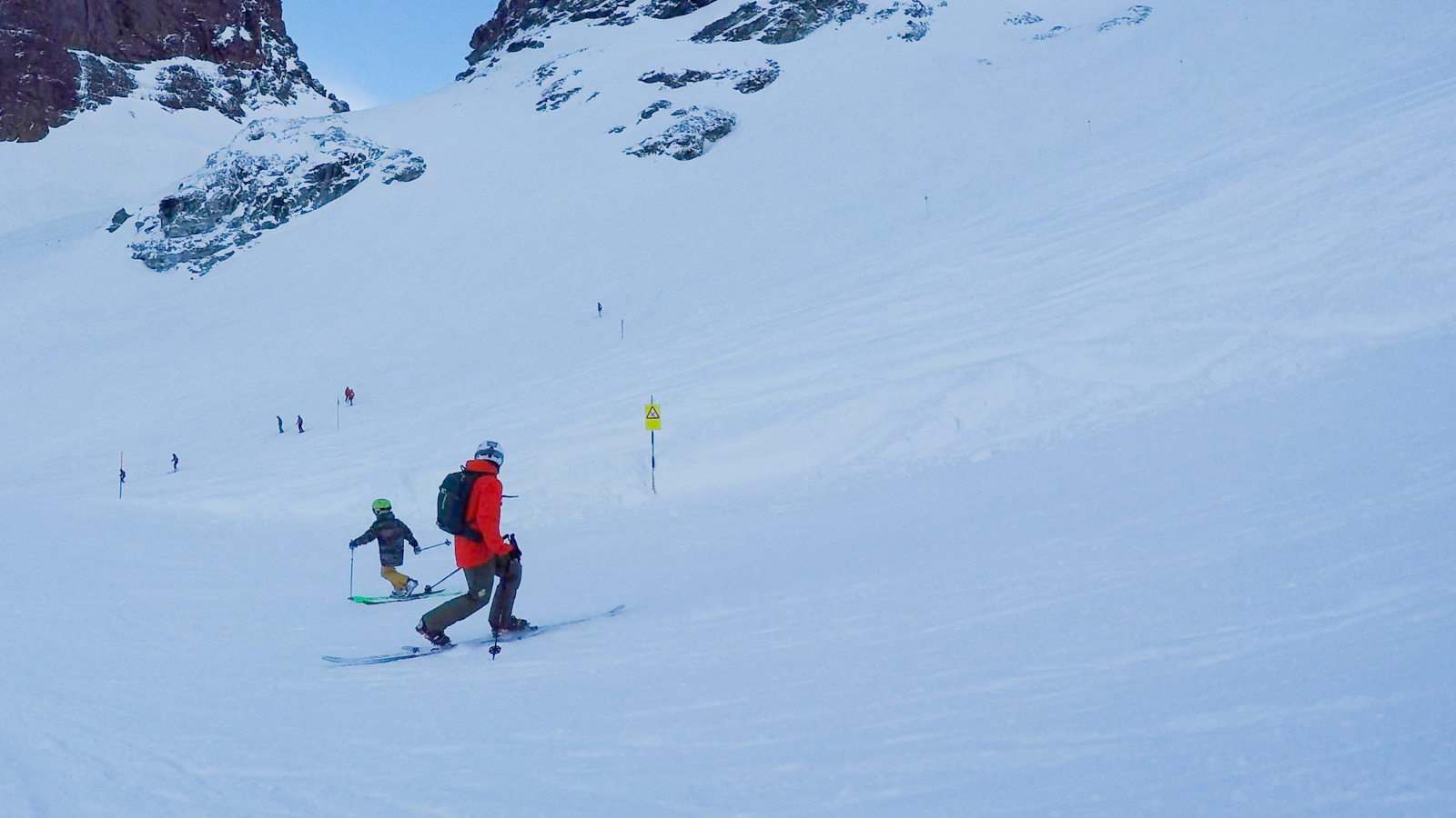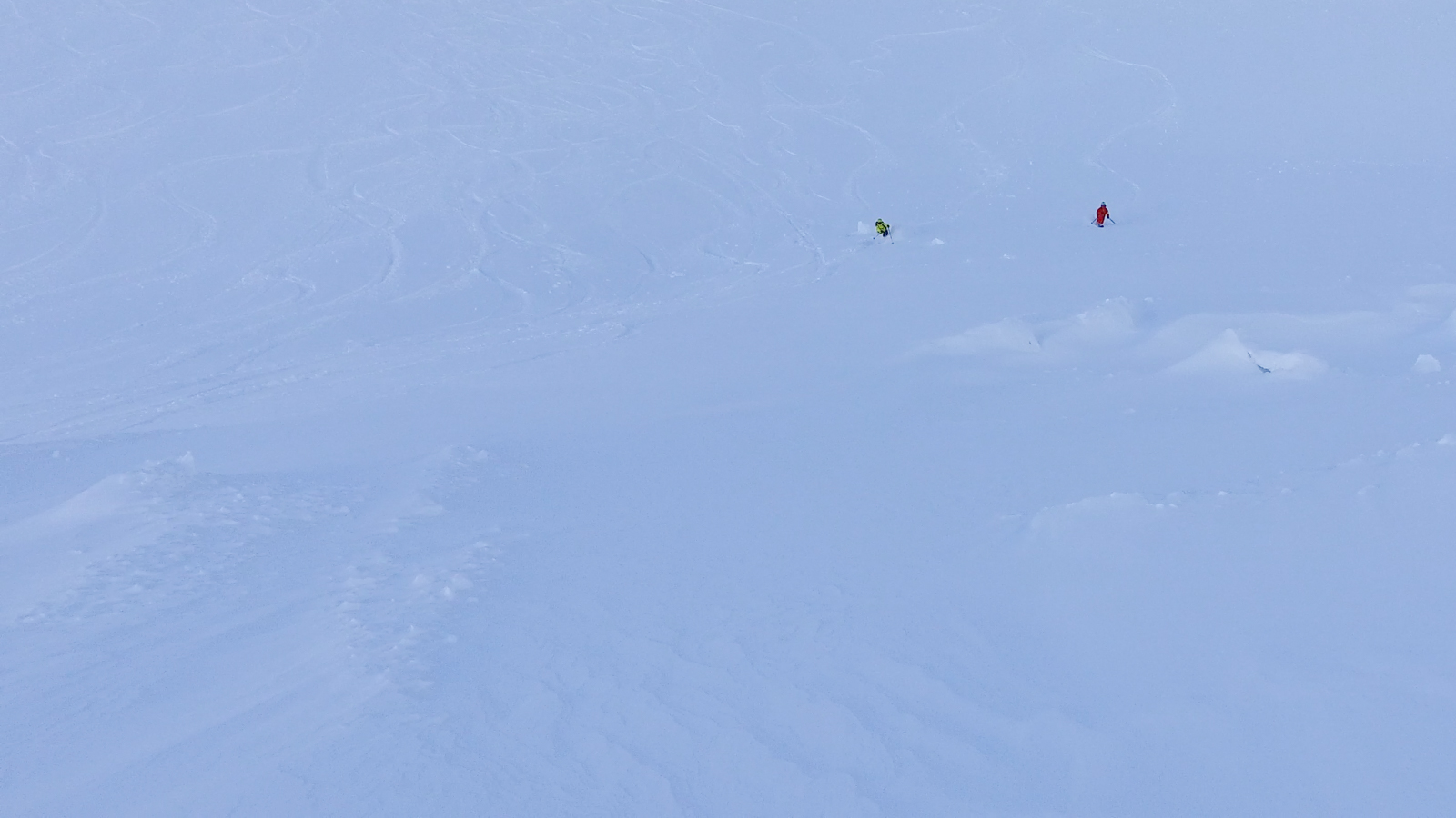 Le dernier jour, quelques virages dans la poudre, quelques tests de notre nouveau matériel de tournage (une caméra 360°, la Insta360), en passant par quelques conseils pour les débutants qui se sont joints à nous pour cette ouverture de saison.