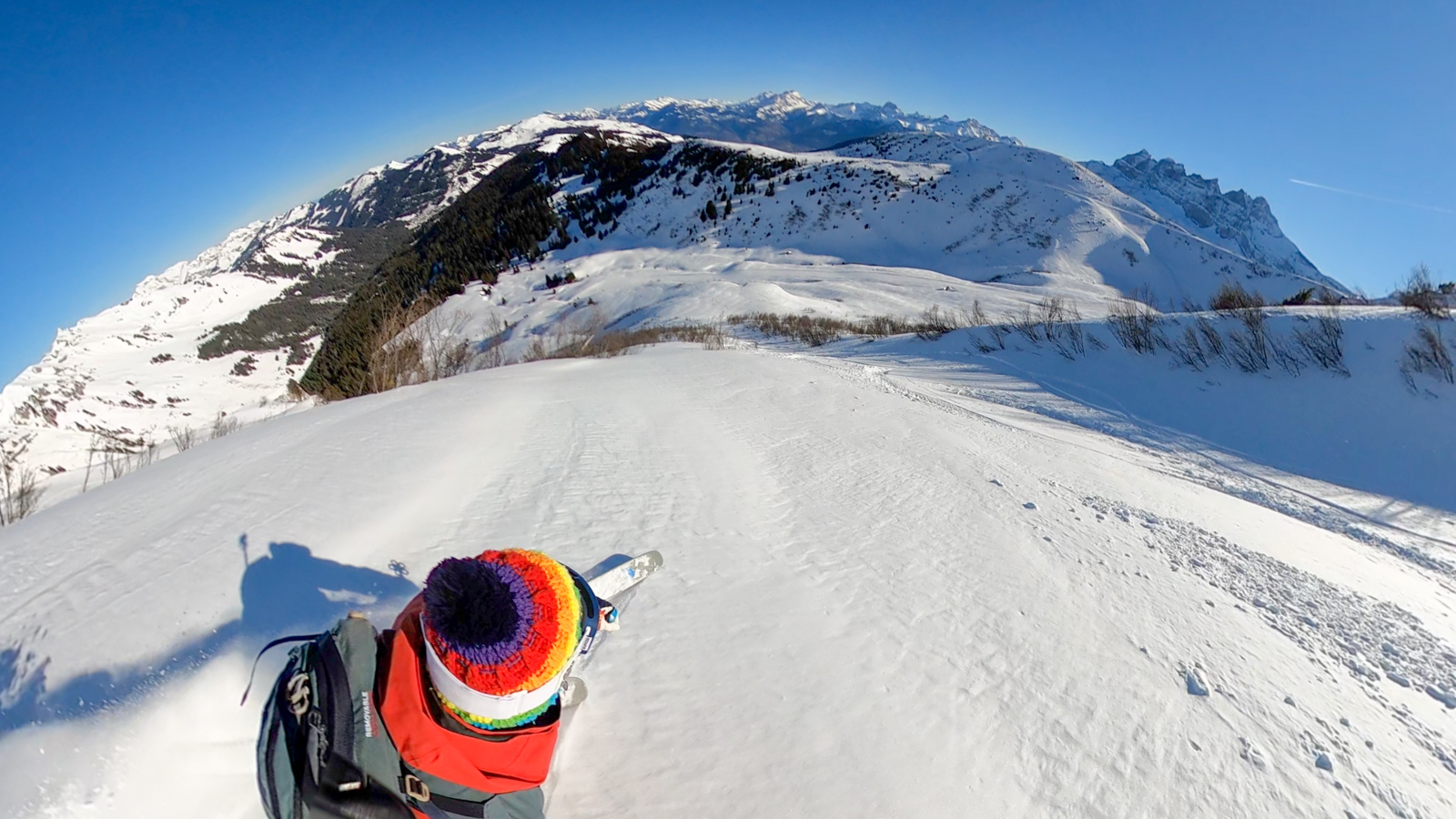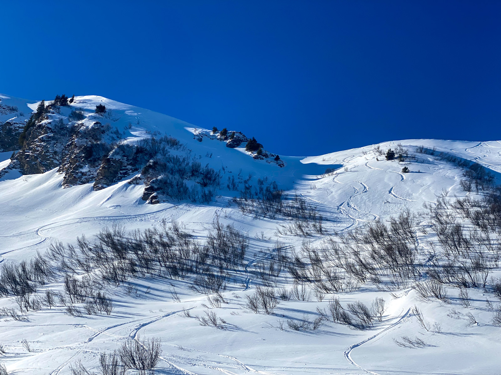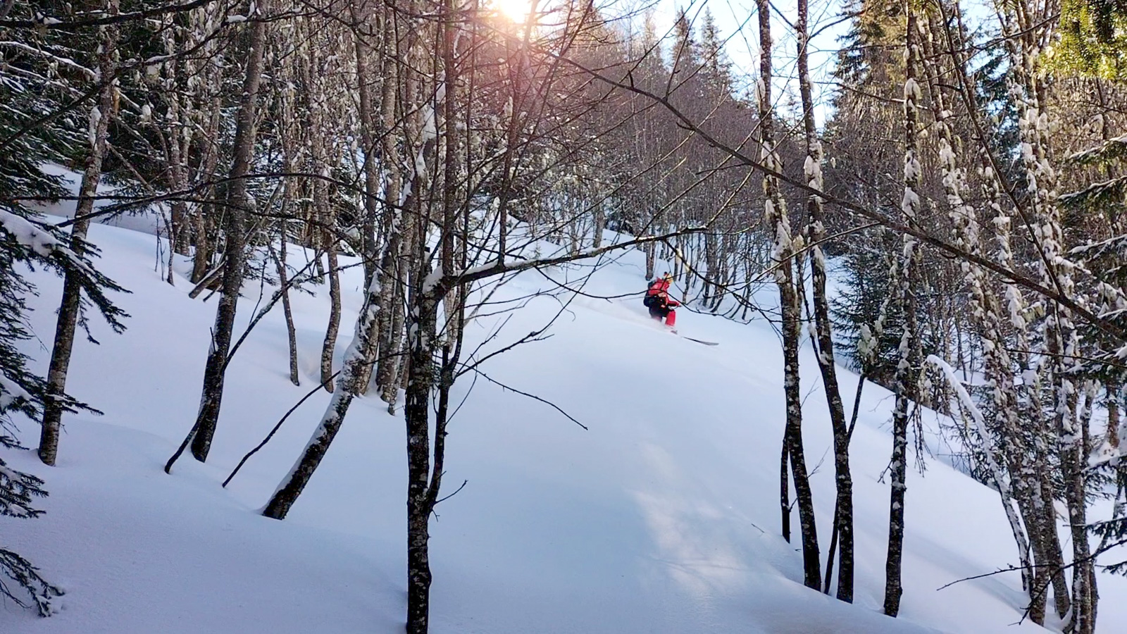 Mardi, on s’équipe et on monte le sourire aux lèvres, impatients de retrouver un peu de poudre et d’en profiter. On trouve des petits coins inattendus avec une belle couche, juste ce qu’il faut pour se faire plaisir. Un magnifique couloir et puis des crêtes à couper le souffle et la forêt toujours aussi joueuse.