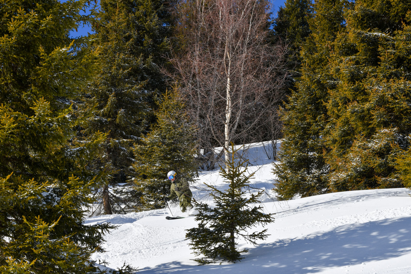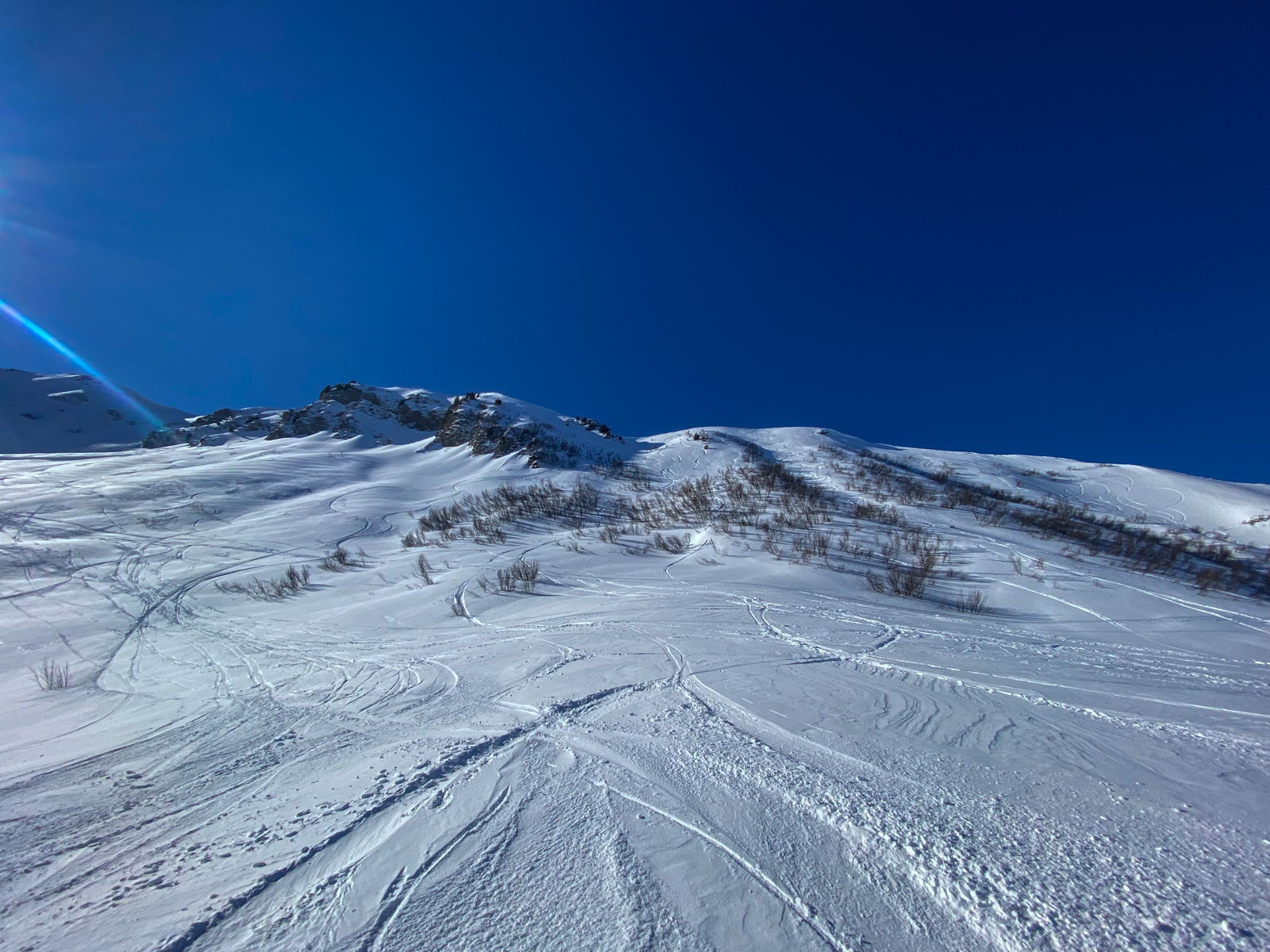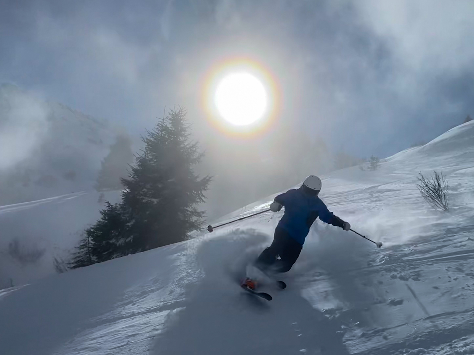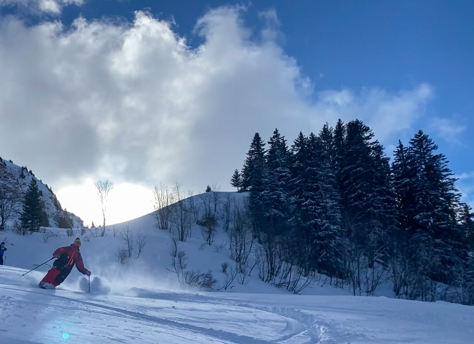 Mardi, on s’équipe et on monte le sourire aux lèvres, impatients de retrouver un peu de poudre et d’en profiter. On trouve des petits coins inattendus avec une belle couche, juste ce qu’il faut pour se faire plaisir. Un magnifique couloir et puis des crêtes à couper le souffle et la forêt toujours aussi joueuse.
